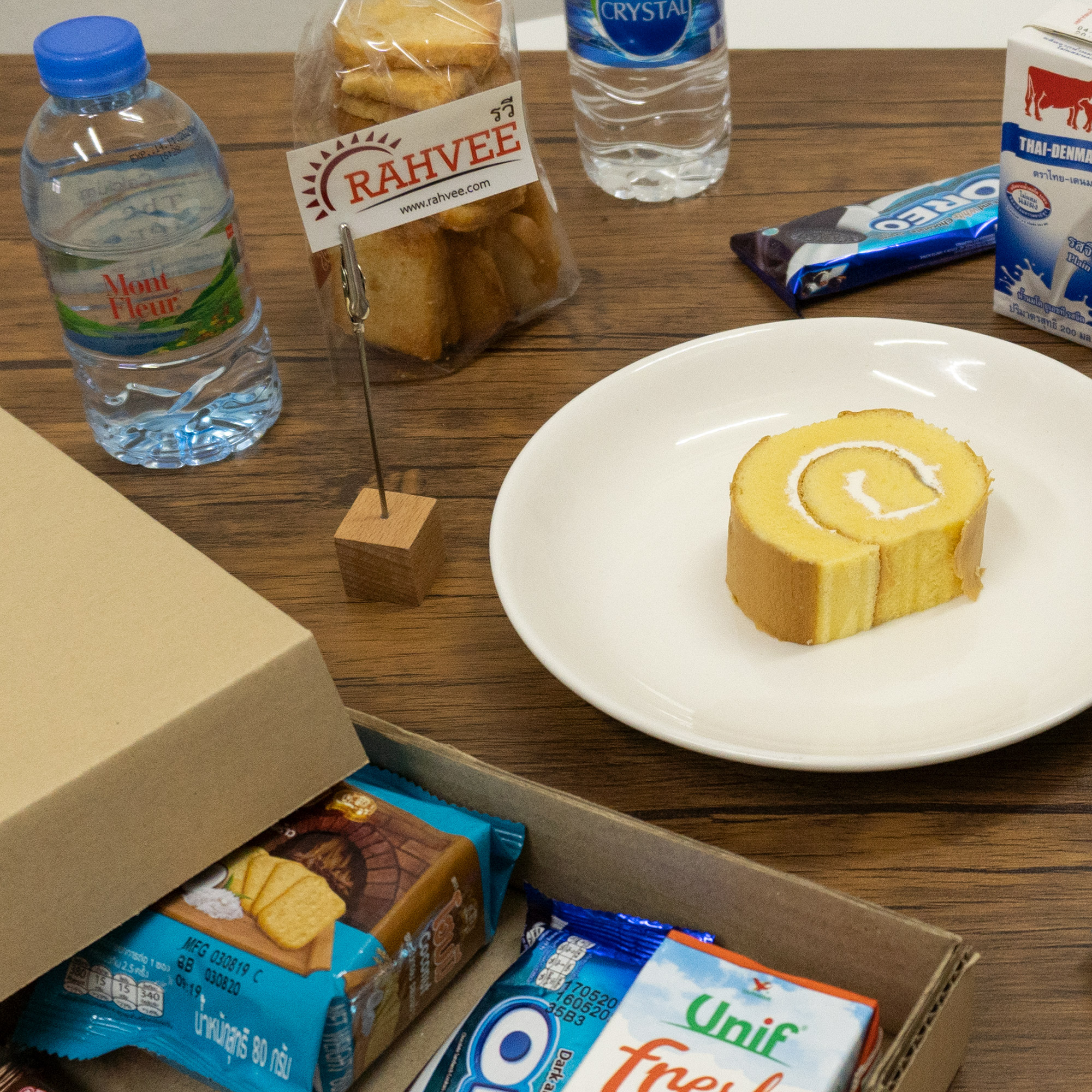 สแน๊คบ๊อกซ์พร้อมขนมปัง ขนม 2 ชิ้น และเครื่องดื่ม (โปรดสั่งล่วงหน้า 2-3 วัน เพื่อเตรียมเบเกอรี่) มาพร้อมกล่อง reusable รักโลก ไม่ใช่ใช้ครั้งเดียวทิ้ง